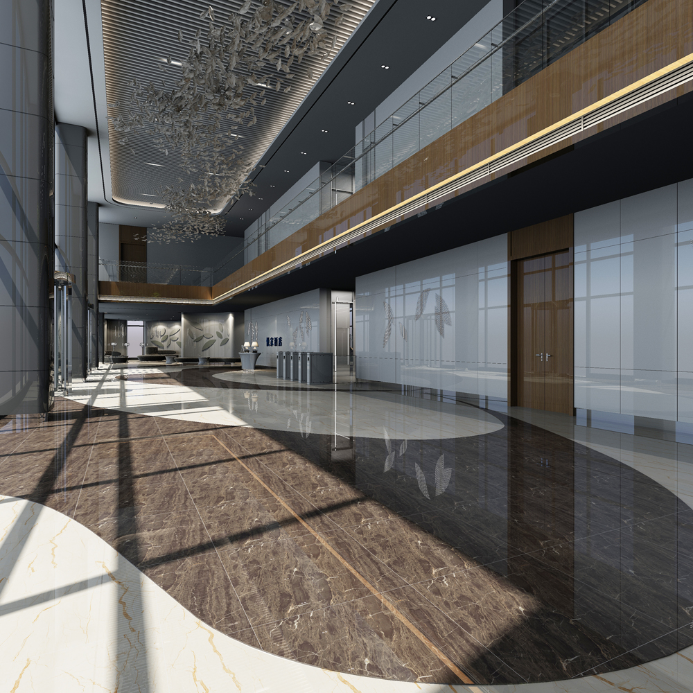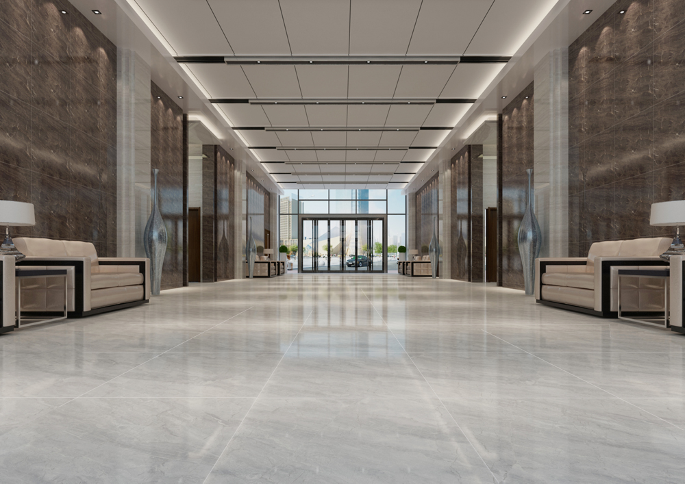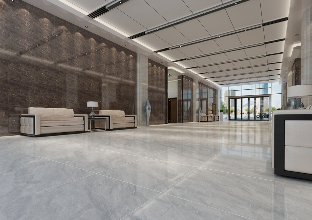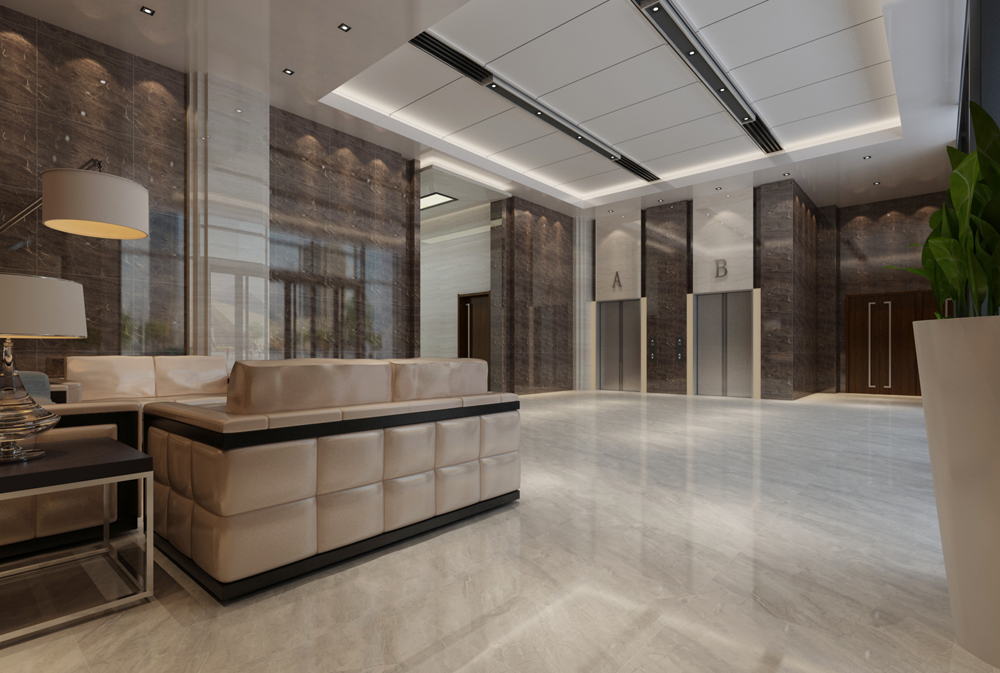 酒店休息區(qū)(KTA8301/KTB8110),同樣以通體大理石KTA8301/KTB8110鋪貼,一深一淺的搭配正好區(qū)分墻面和地面,但它們的紋理大致一樣,又很好地營造空間的和諧統(tǒng)一。沙發(fā)選用與地面接近的顏色,線條簡潔大氣,在休息區(qū)沒有流動的線條,設(shè)計師用意是想營造休息區(qū)的安靜氛圍。