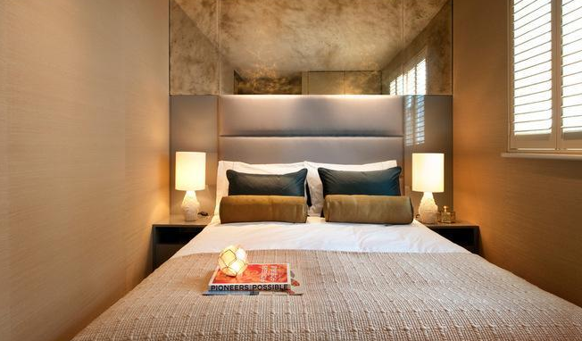 使用鏡子是擴大視覺空間的絕招。特別是針對小型的臥室,一個帶有鏡子的墻面,至少可以讓空間擴大兩倍。鏡子不僅對空間起到微妙的作用,同時它也是一件優雅的裝飾品。