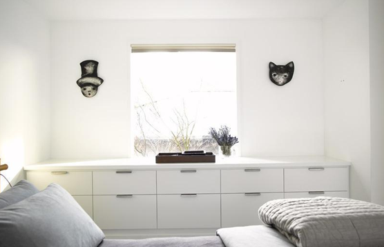 白色可以說是永不落伍的裝修色彩,不僅可以打造知性、淡雅的房間氛圍,全白的家居設計還能使得空間的安全感大大增加。窗戶與白色的家具相連接,把人的視線自然而然地就引向窗外,擴大了視野。