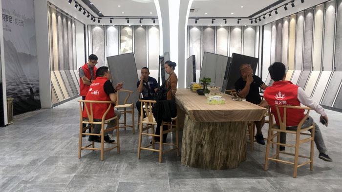 四天時間,蒞臨參觀的客商不計其數,對這無論是品質上還是顏值上,都完美得無可挑剔,每一款產品,都給人一種回歸大自然的真實感覺的阿瑪羅尼現代仿古磚贊美不停。偌大的展廳呈現出一片熱鬧非凡的景象,可謂是人氣爆棚!
