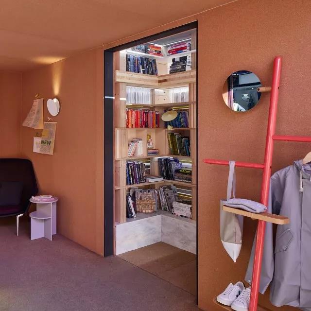 連門都做成了書柜的樣式,最大化的利用了這個(gè)屋子的沒一個(gè)角落,當(dāng)然,“圖書館”的面積不需要很大,根據(jù)自己家的空間來即可。