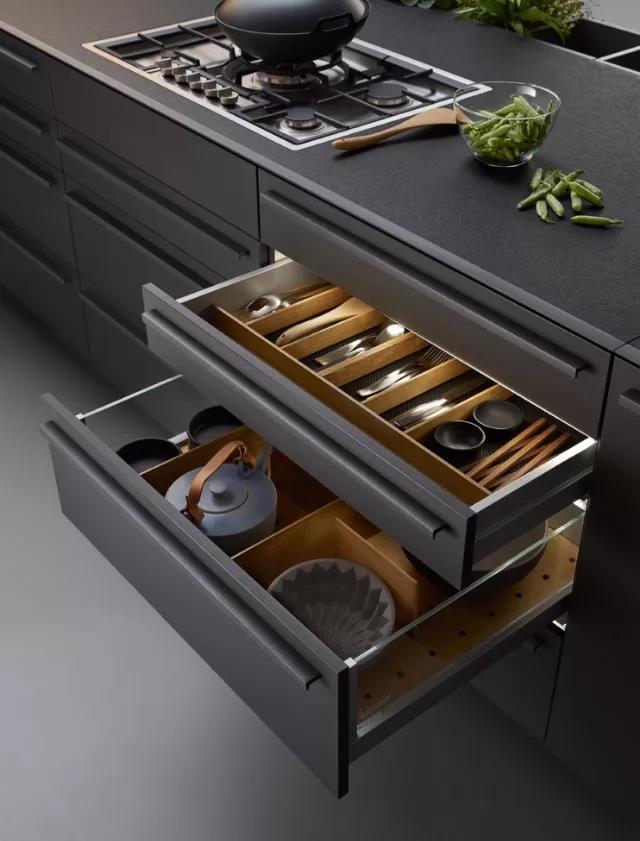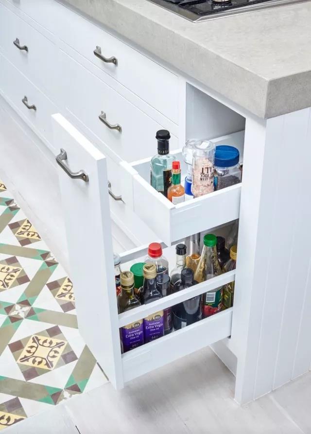 廚房空間不大,東西卻不少,如果沒有收納好,加上油煙肆虐,廚房一定成了烏煙瘴氣的地方,所以說,廚房裝修首先考慮的問題是—收納!