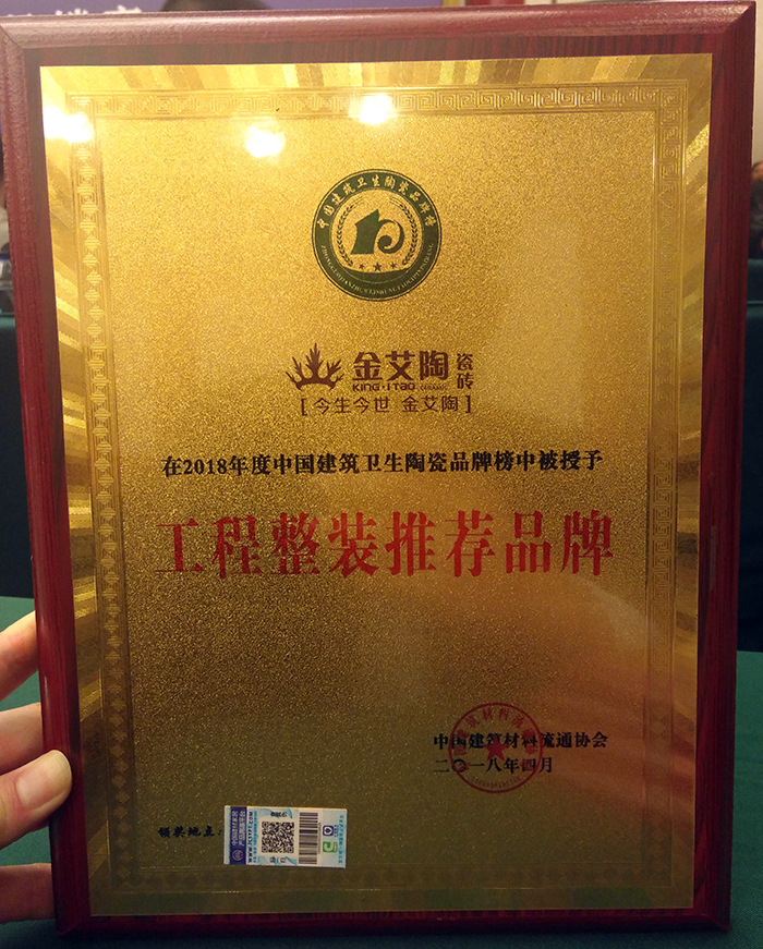 作為陶瓷行業(yè)后起之秀的金艾陶瓷磚品牌喜獲“陶瓷一線品牌”、“現(xiàn)代仿古磚十大品牌”、“緞光釉領(lǐng)軍品牌”、“設(shè)計(jì)師推薦品牌”、“工程整裝推薦品牌”等多項(xiàng)殊榮,其中更是連續(xù)五年獲得“陶瓷一線品牌”榮譽(yù)。在本次“行業(yè)兩會(huì)”的評(píng)選中,金艾陶瓷磚品牌能夠在眾多知名陶瓷企業(yè)中脫穎而出,證明金艾陶又一次獲得了行業(yè)內(nèi)外的肯定。
